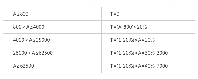 如果本月的收益为A,那么需要缴纳的税款T为: