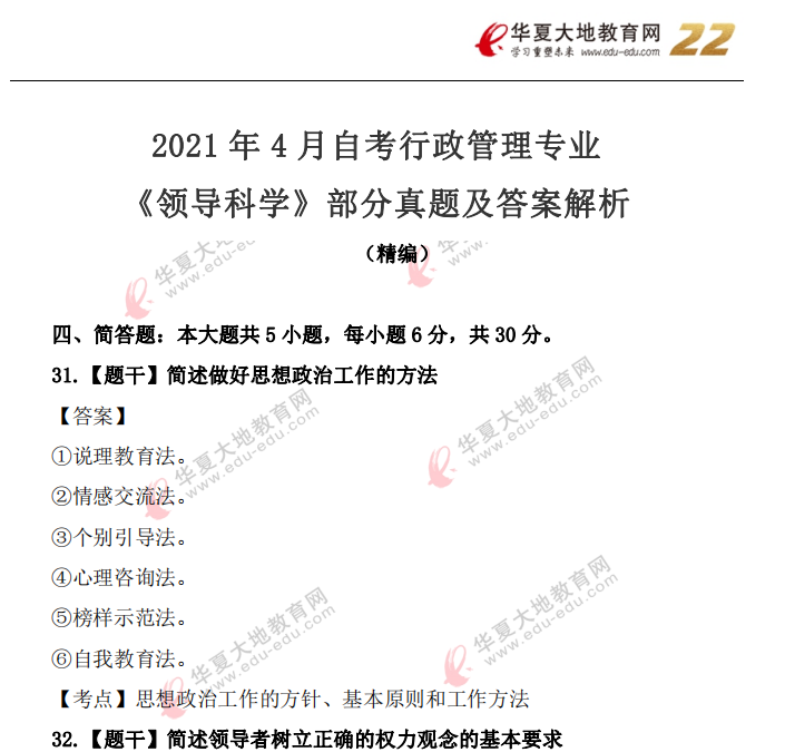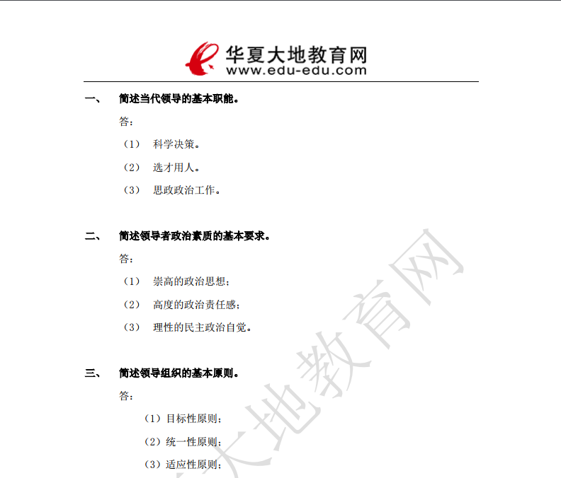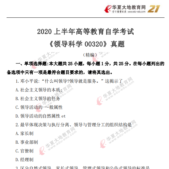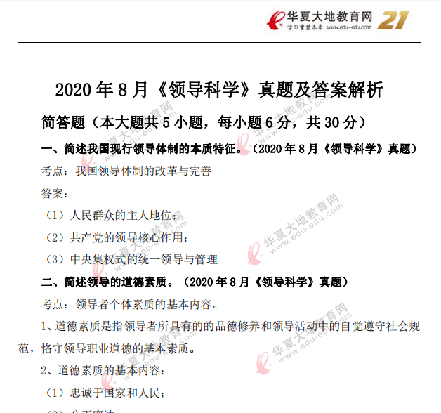 资料简介:2020年8月自考真题及答案—《领导科学》