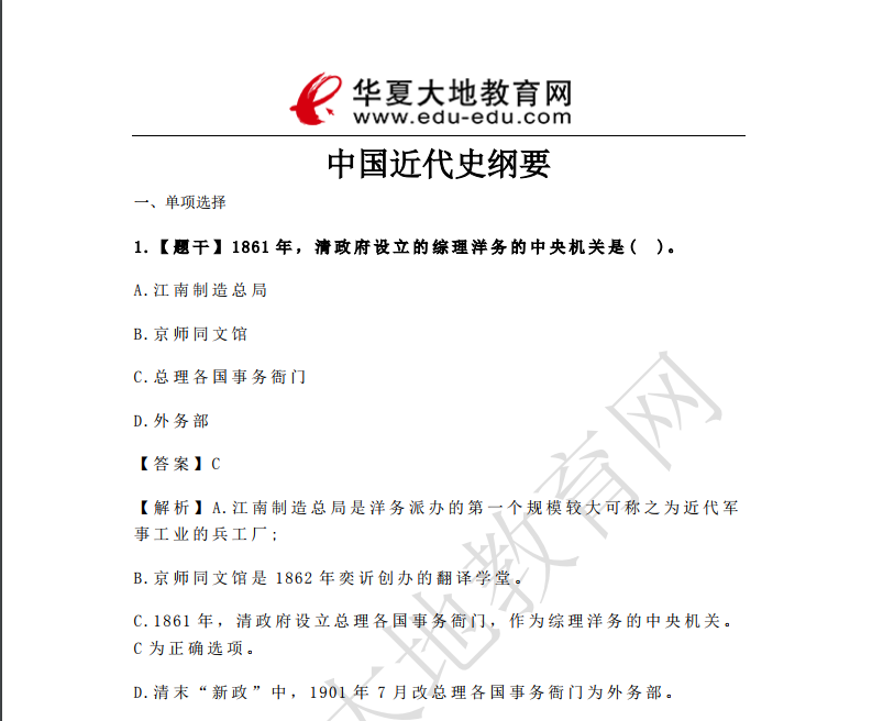 资料简介:2019年4月真题及答案—近代史(代码:03708)