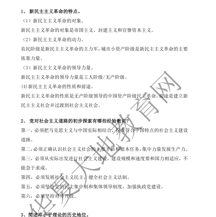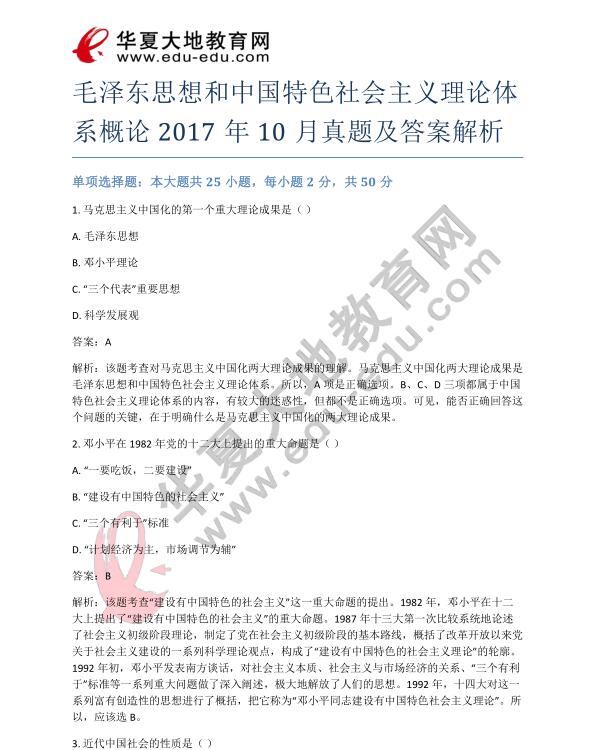 资料简介: 毛概2017年10月真题及答案解析