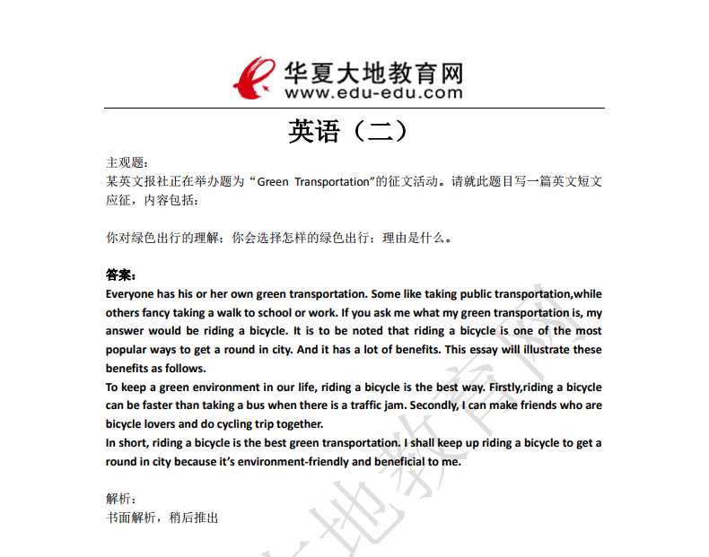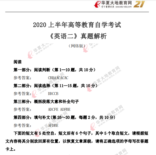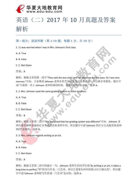 资料简介:英语二2017年10月真题及答案解析