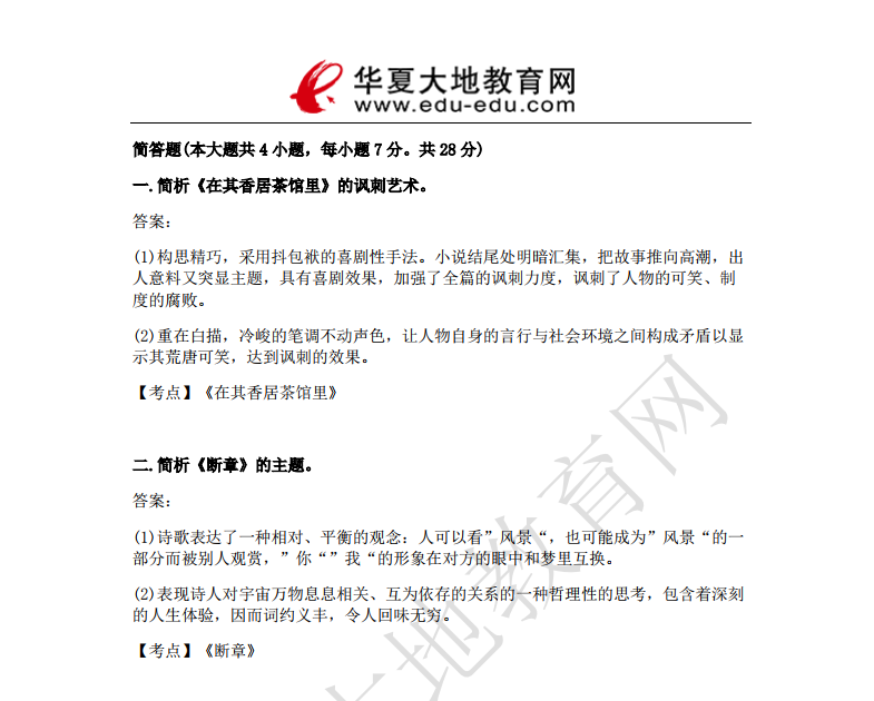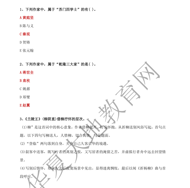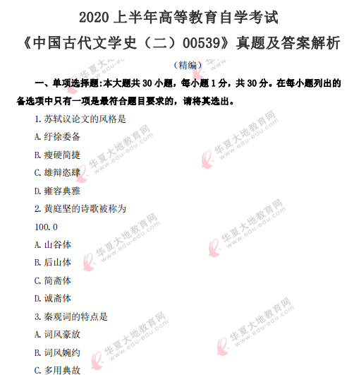 资料简介:2019年4月真题及答案—中国古代文学作品选(二)(代码:00533)