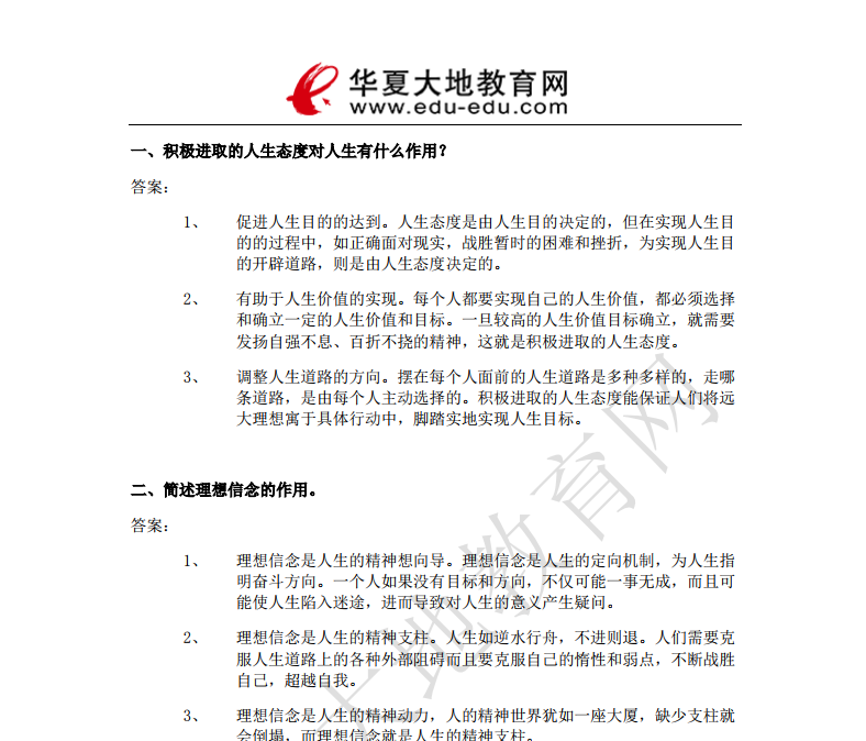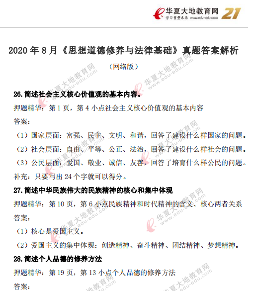 资料简介:2020年8月自考真题及答案—《思想道德修养与法律基础》