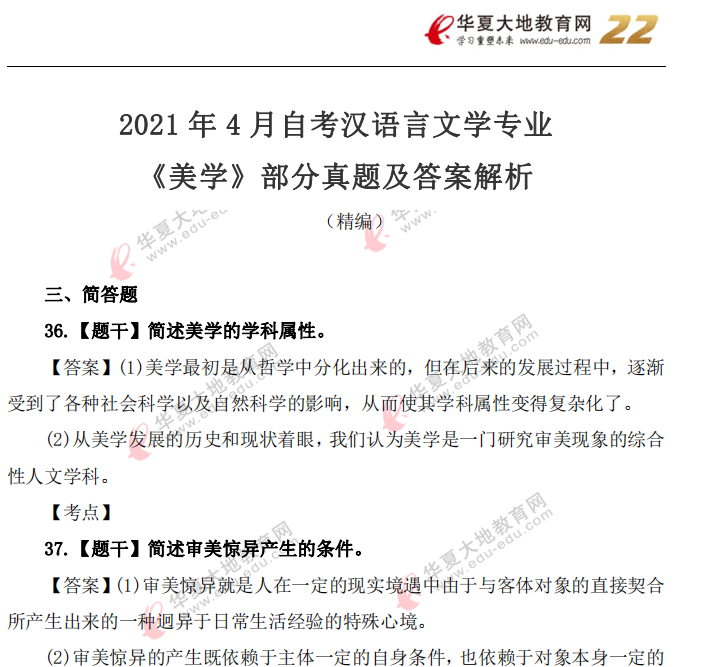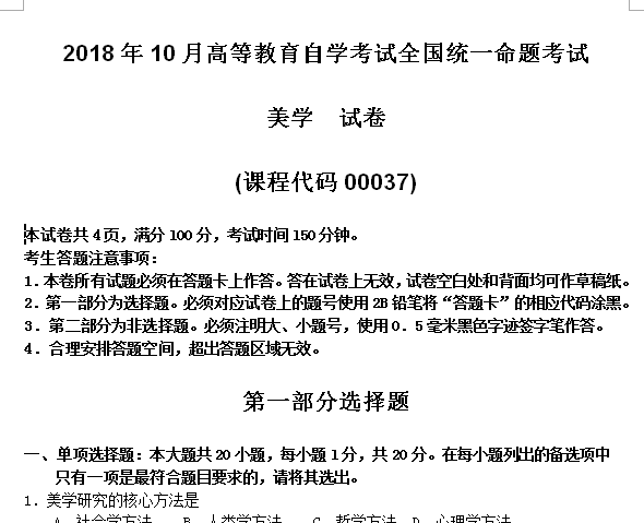 资料简介:2019年4月真题及答案—美学(代码:00037)