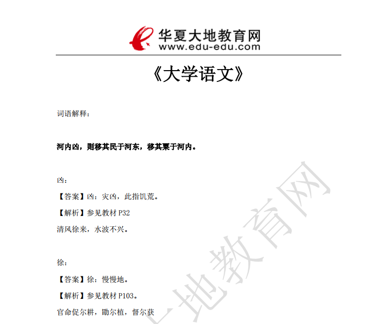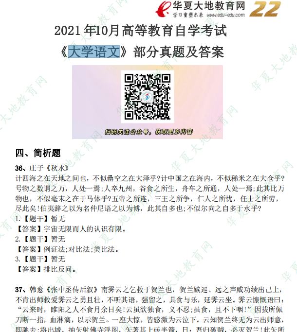 资料简介:2019年10月真题及答案—《大学语文》