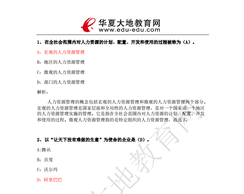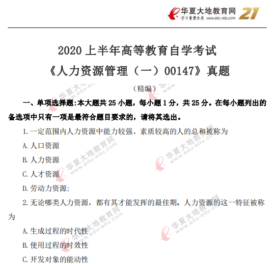 资料简介:2019年4月真题及答案—人力资源管理(一)(代码:00147)