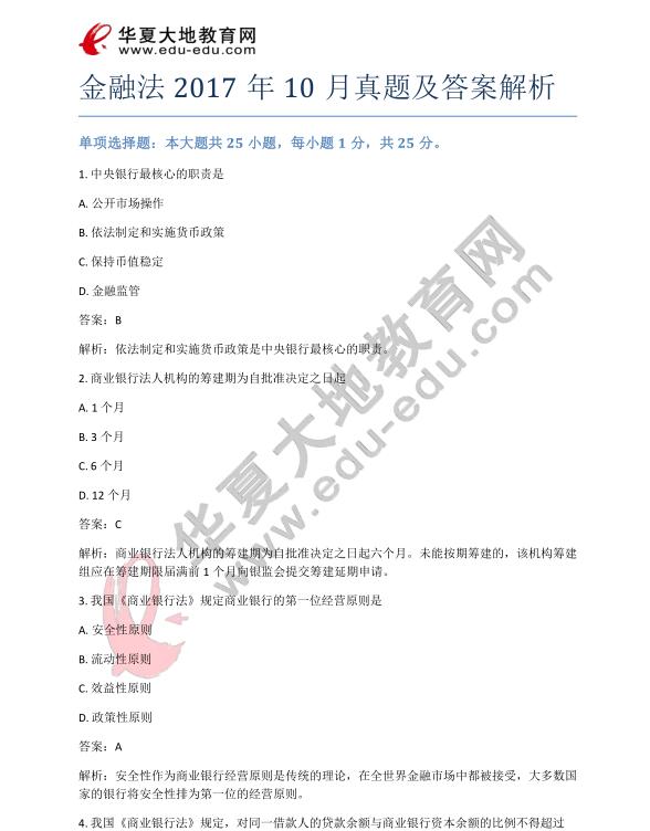 资料简介:自考《金融法》2017年10月真题及答案解析