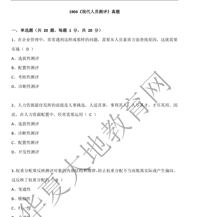 资料简介:2019年4月真题及答案—《现代人员测评》