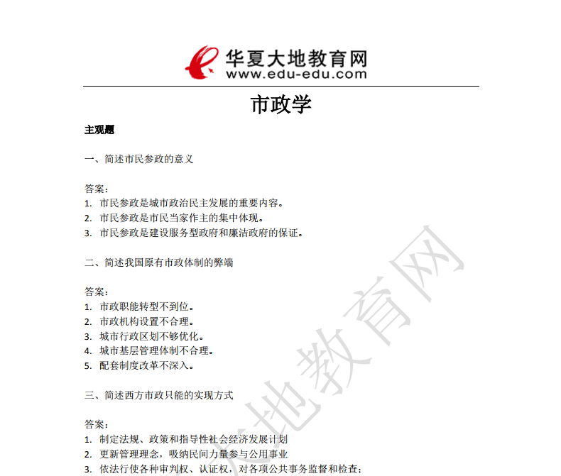 资料简介:2019年4月真题及答案—市政学(代码:00292)