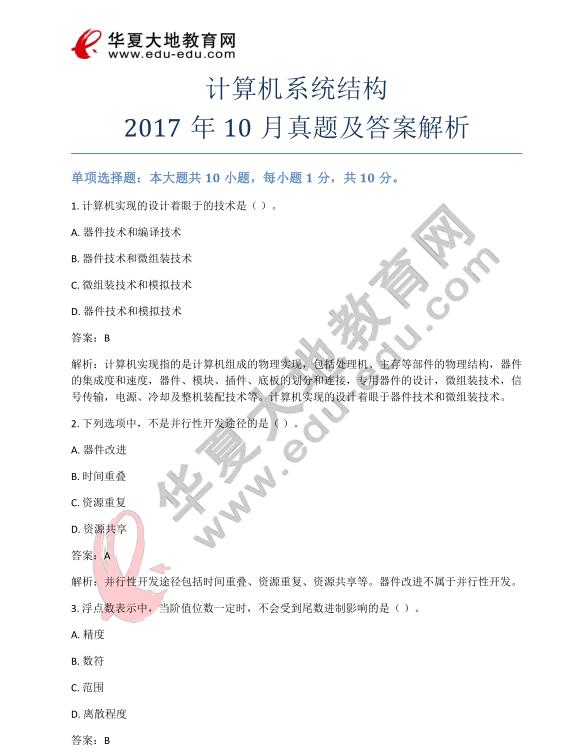 资料简介:自考《计算机系统结构》2017年10月真题及答案解析