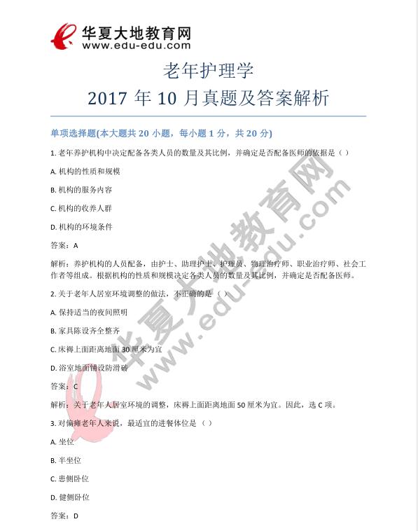 资料简介:老年护理学2017年10月真题及答案解析