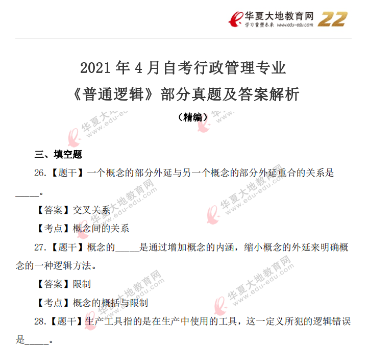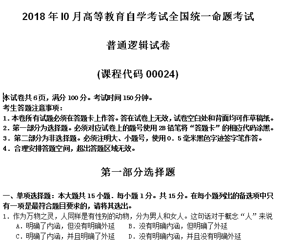 资料简介:2019年4月真题及答案—普通逻辑(代码:00024)