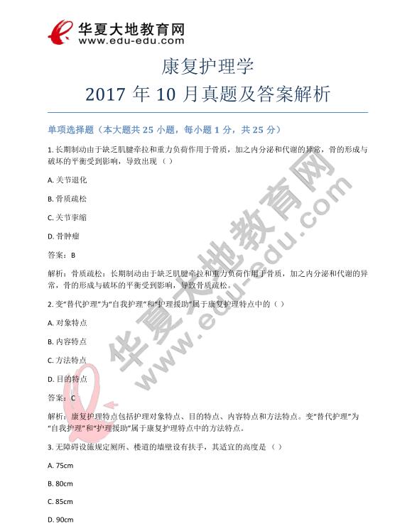 资料简介:康复护理学2017年10月真题及答案解析