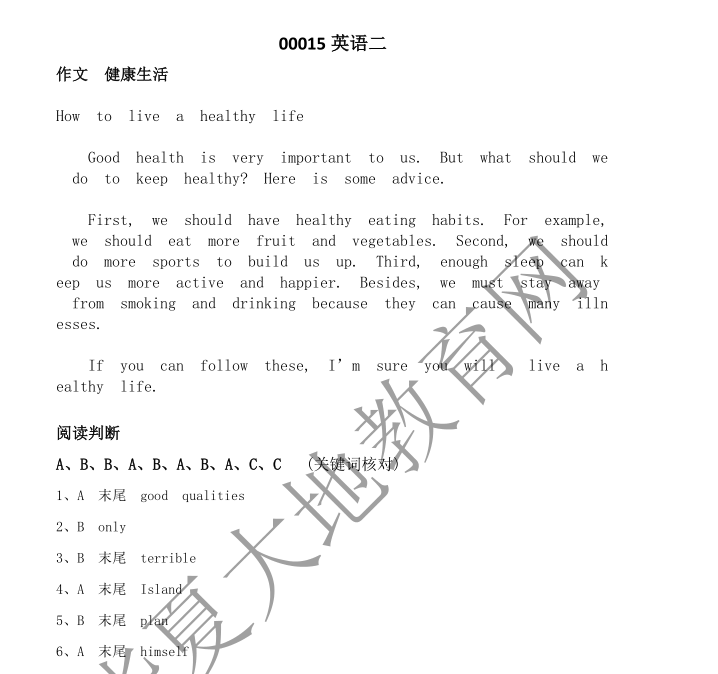 资料简介:2019年4月真题及答案—英语二(代码:00015)