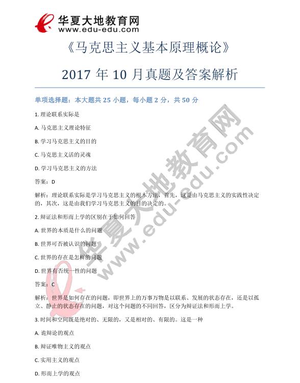 资料简介:马克思主义基本原理概论2017年10月真题及答案解析