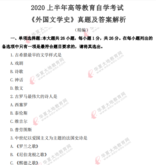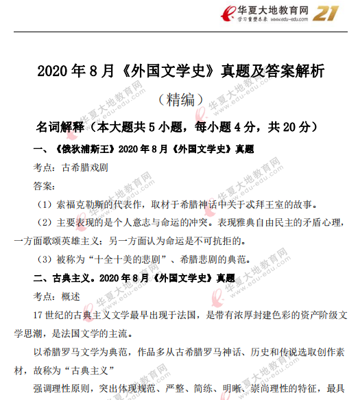 资料简介:2020年8月自考真题及答案—《外国文学史》