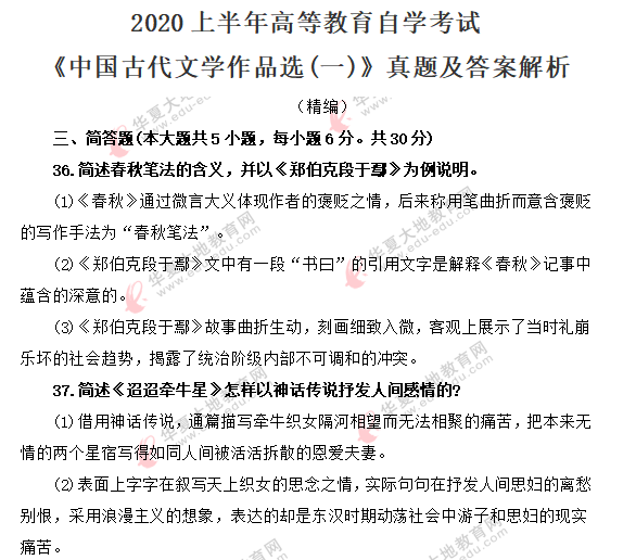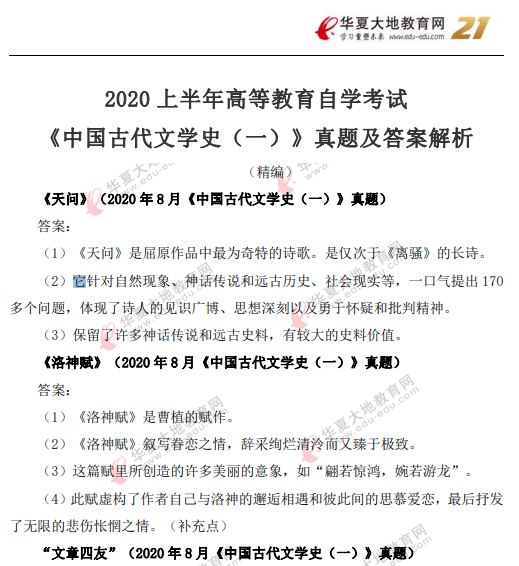 资料简介:2020年8月自考真题及答案—《中国古代文学史(一)》