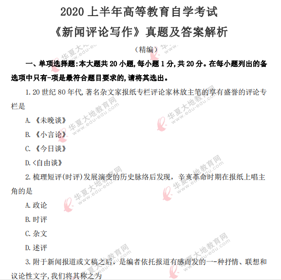 资料简介:2020年8月自考真题—《新闻评论写作》