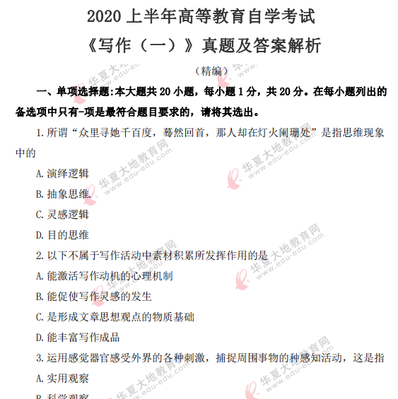 资料简介:2020年8月自考真题—《写作(一)》