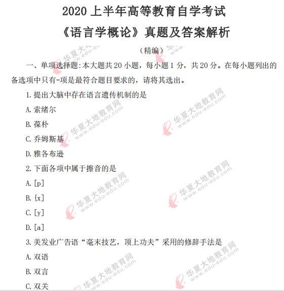 资料简介:2020年8月自考真题—《语言学概论》