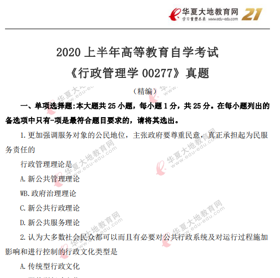 资料简介:2020年8月自考真题—《行政管理学00277》