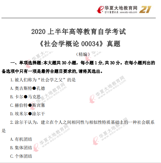 资料简介:2020年8月自考真题及答案—《社会学概论》