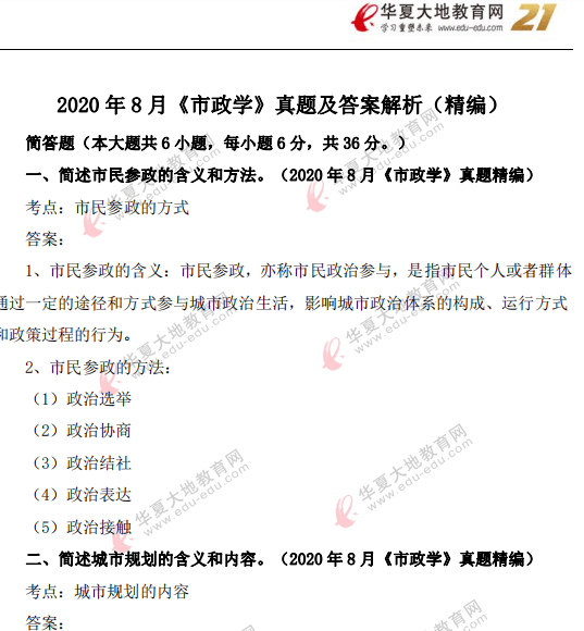 资料简介:2020年8月自考真题及答案—《市政学》
