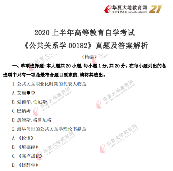 资料简介:2020年8月自考真题—《公共关系学00182》
