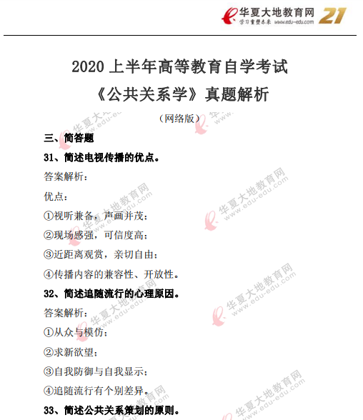 资料简介:2020年8月自考真题及答案—《公共关系学》