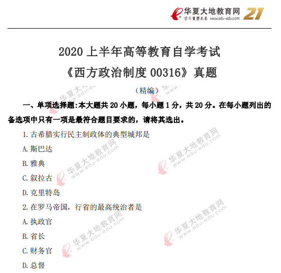 资料简介:2020年8月自考真题—《西方政治制度00316》