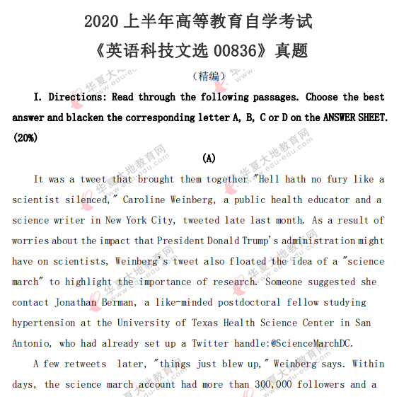资料简介:2020年8月自考真题—《英语科技文选00836》