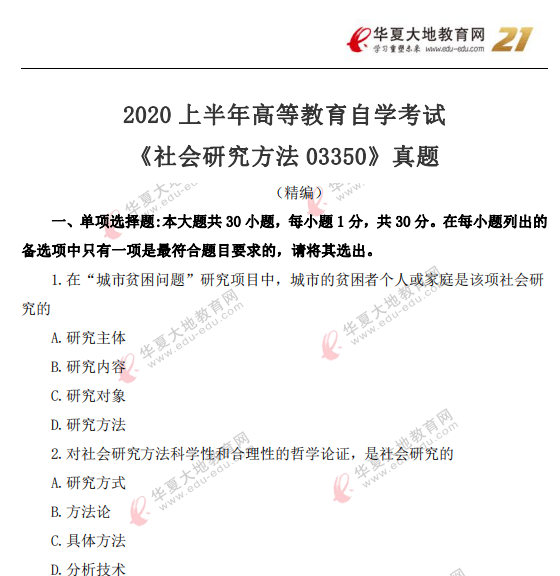 资料简介:2020年8月自考真题—《社会研究方法03350》