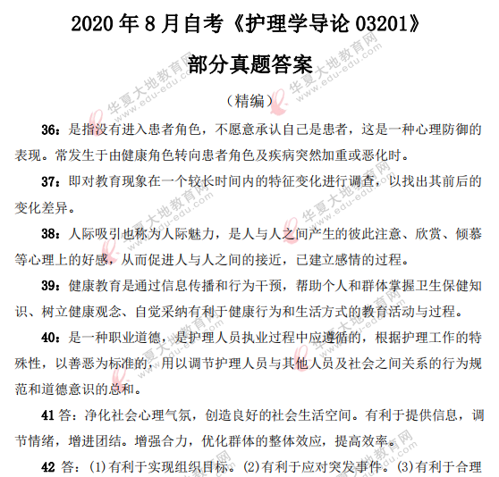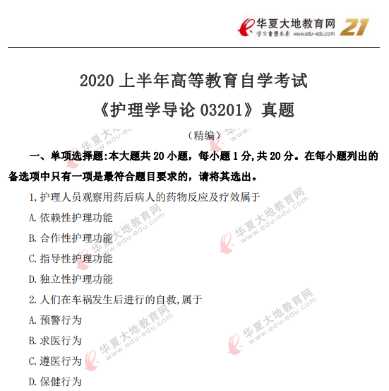 资料简介:2020年8月自考真题—《护理学导论03201》