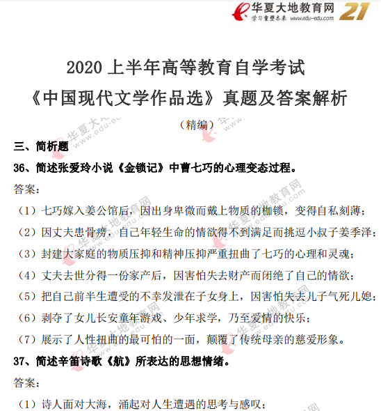 资料简介:2020年8月自考真题及答案—《中国现代文学作品选》