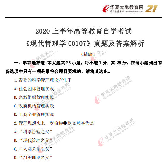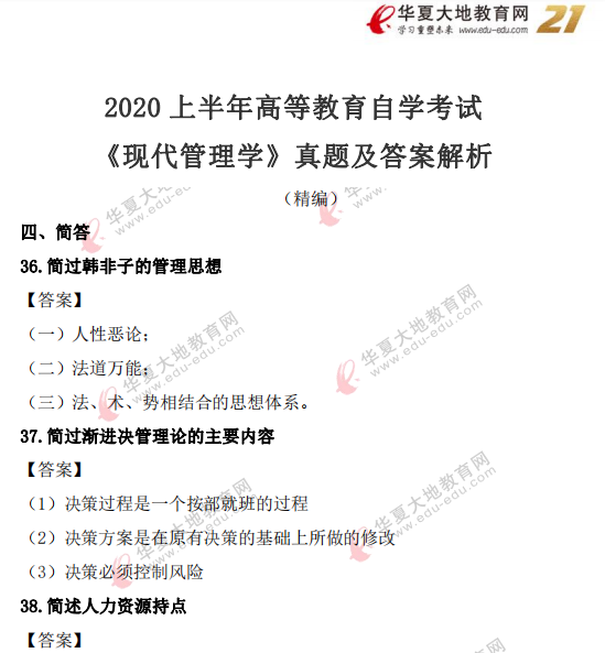 资料简介:2020年8月自考真题及答案—《现代管理学》