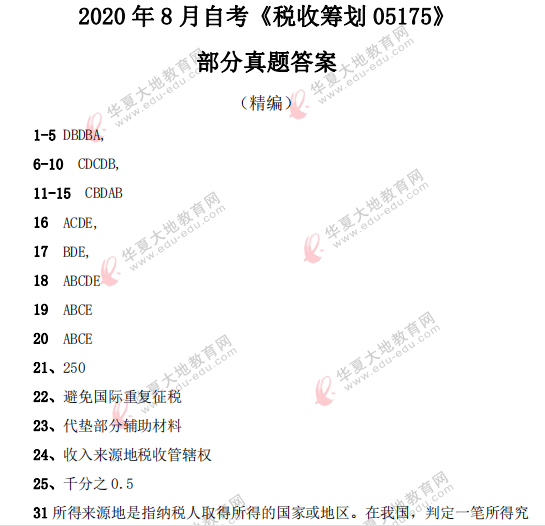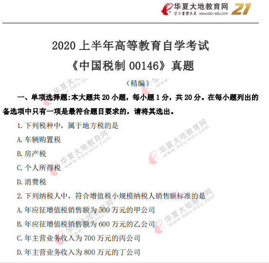 资料简介:2020年8月自考真题—《中国税制00146》