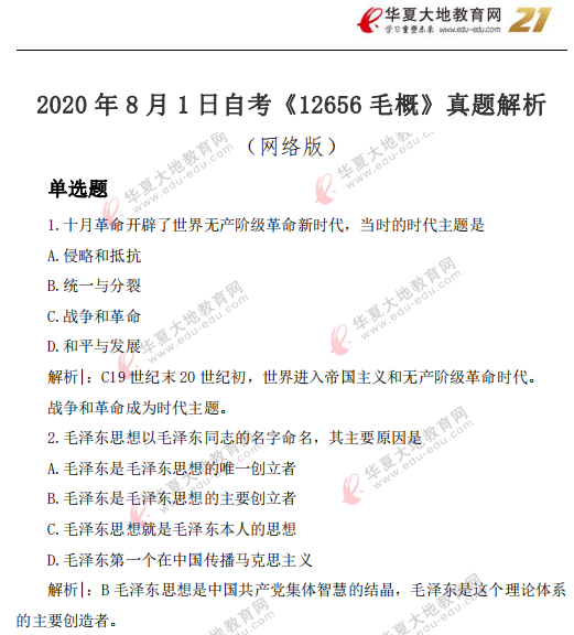 资料简介:2020年8月自考真题及答案—《毛概12656》