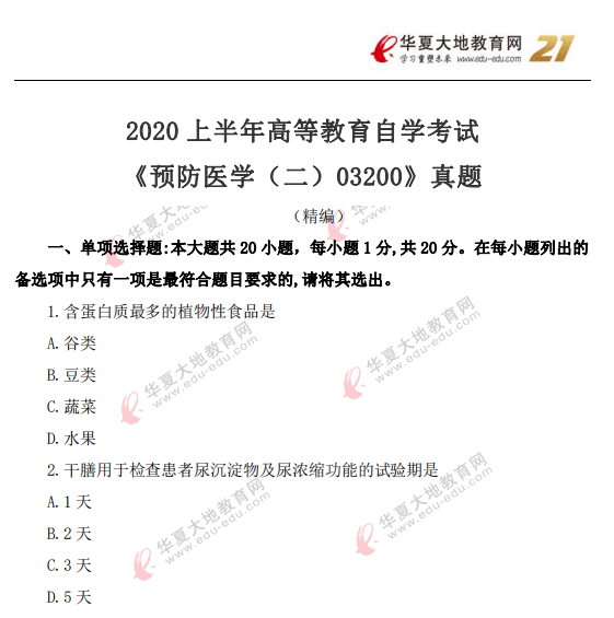 资料简介:2020年8月自考真题—《预防医学(二)03200》