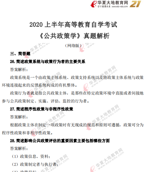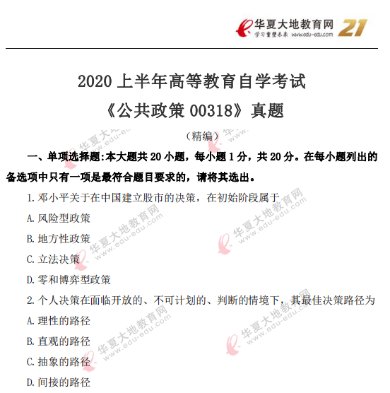资料简介:2020年8月自考真题—《公共政策00318》