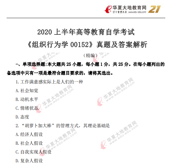 资料简介:2019年4月真题及答案—组织行为学(代码:00152)