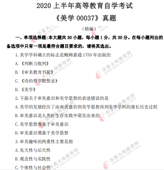 资料简介:2020年8月自考真题—《美学00037》