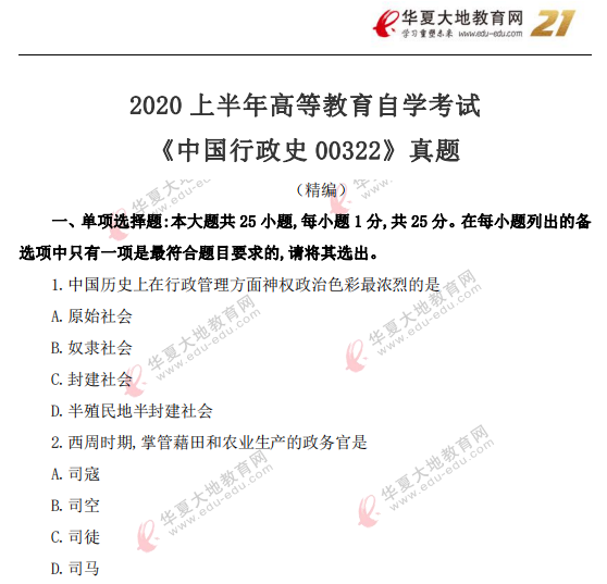 资料简介:2020年8月自考真题—《中国行政史00322》