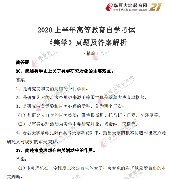 资料简介:2020年8月自考真题及答案—《美学》