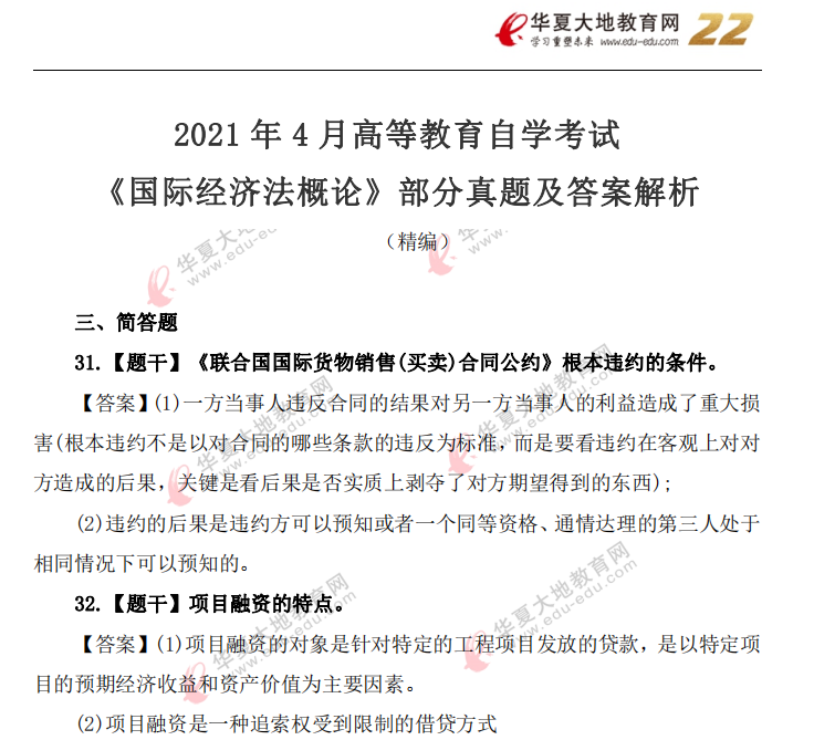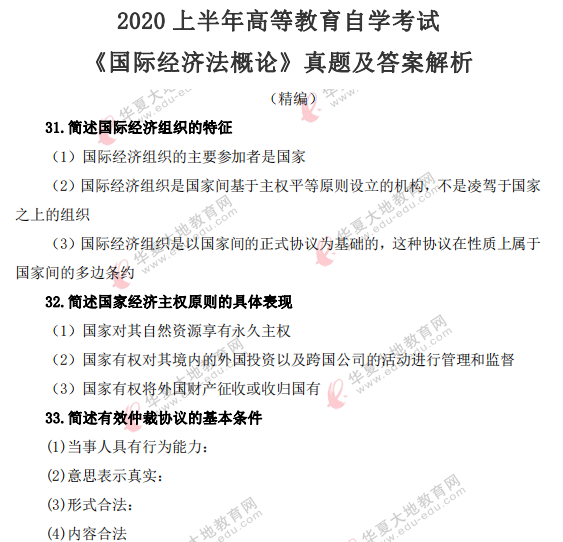资料简介:2021年4月自考真题—《国际经济法概论》