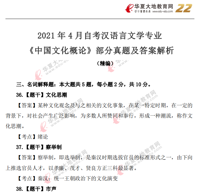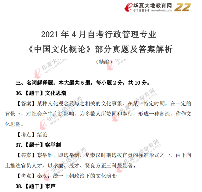 资料简介:2019年4月真题及答案—中国文化概论(代码:00321)