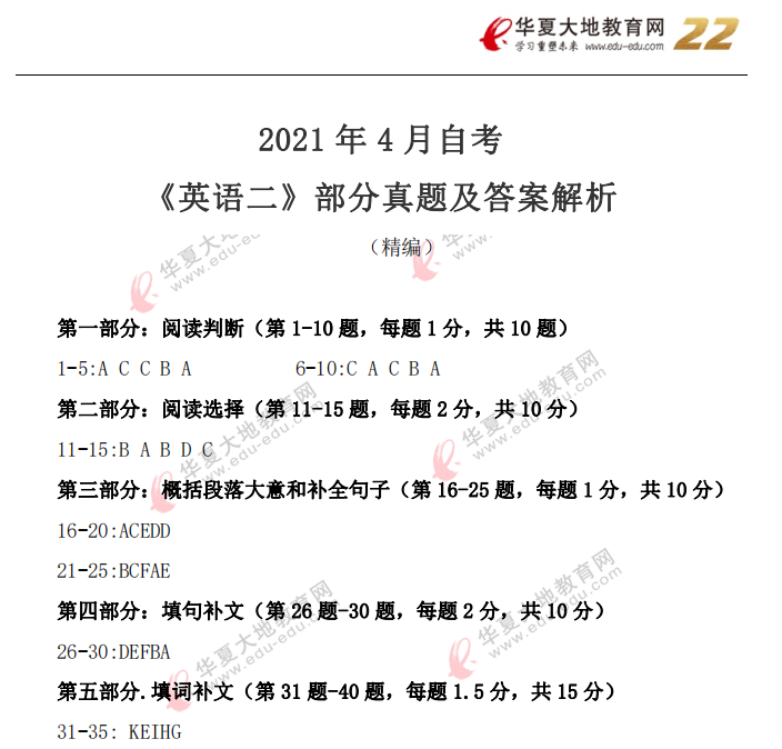 资料简介:2021年4月自考真题—《英语(二)》