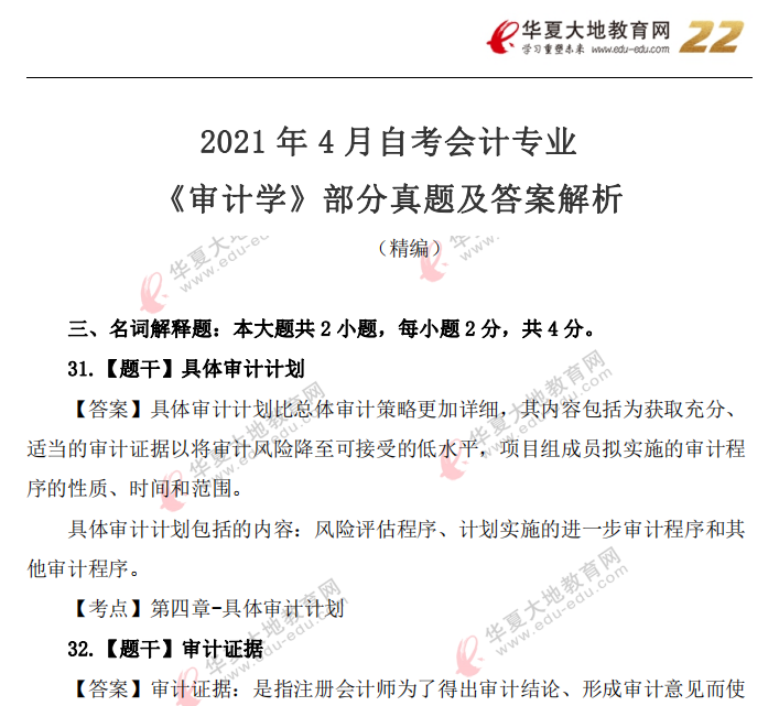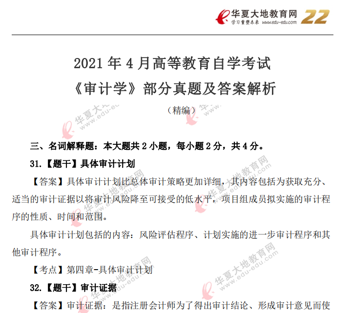 资料简介:2021年4月自考真题—《审计学》