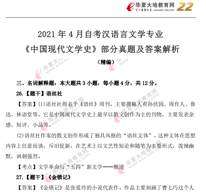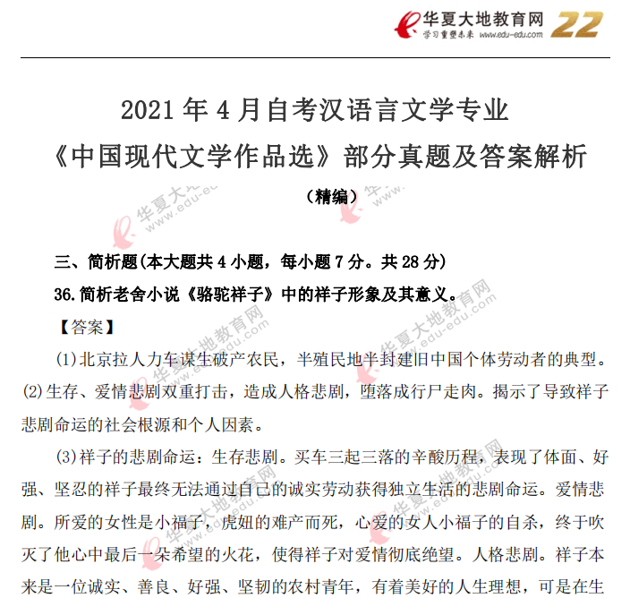 资料简介:2021年4月自考真题—《中国现代文学作品选》