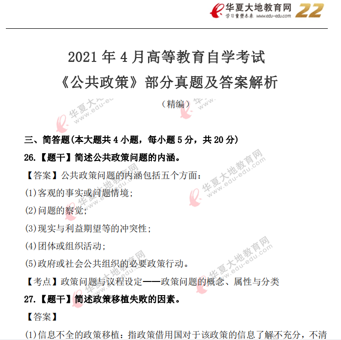 资料简介:2021年4月自考真题—《公共政策》