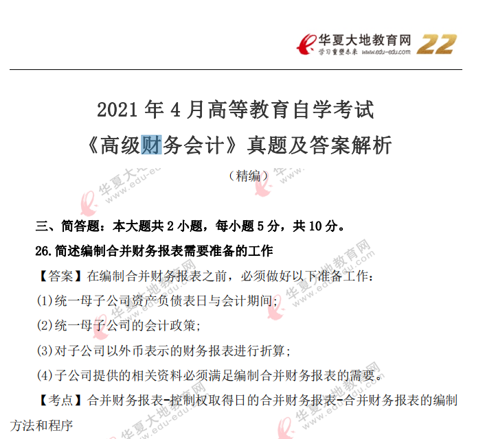 资料简介:2021年4月自考真题—《高级财务会计》
